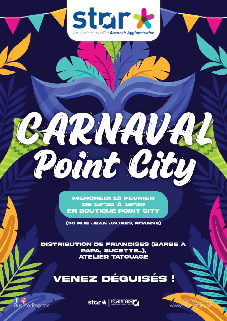Rejoignez-nous le mercredi 18 février de 14h30 à 16h30 à la boutique Point City pour un après-midi festif spécial Carnaval !