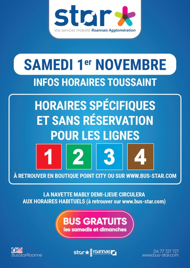 Le samedi 1er novembre (jour férié), les lignes 1, 2, 3 et 4 circuleront aux Horaires Toussaint.