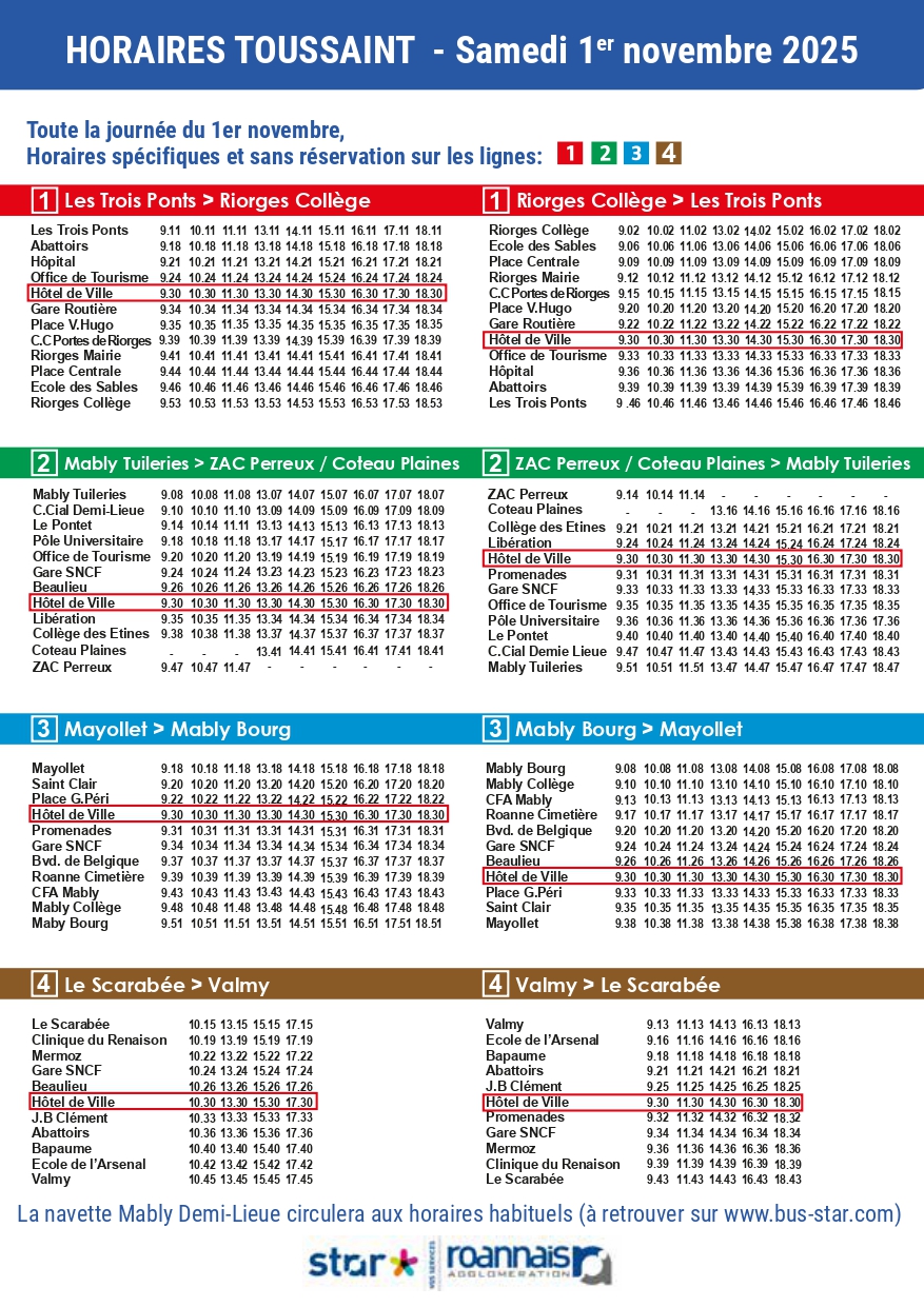 Le samedi 1er novembre (jour férié), les lignes 1, 2, 3 et 4 circuleront aux Horaires Toussaint.