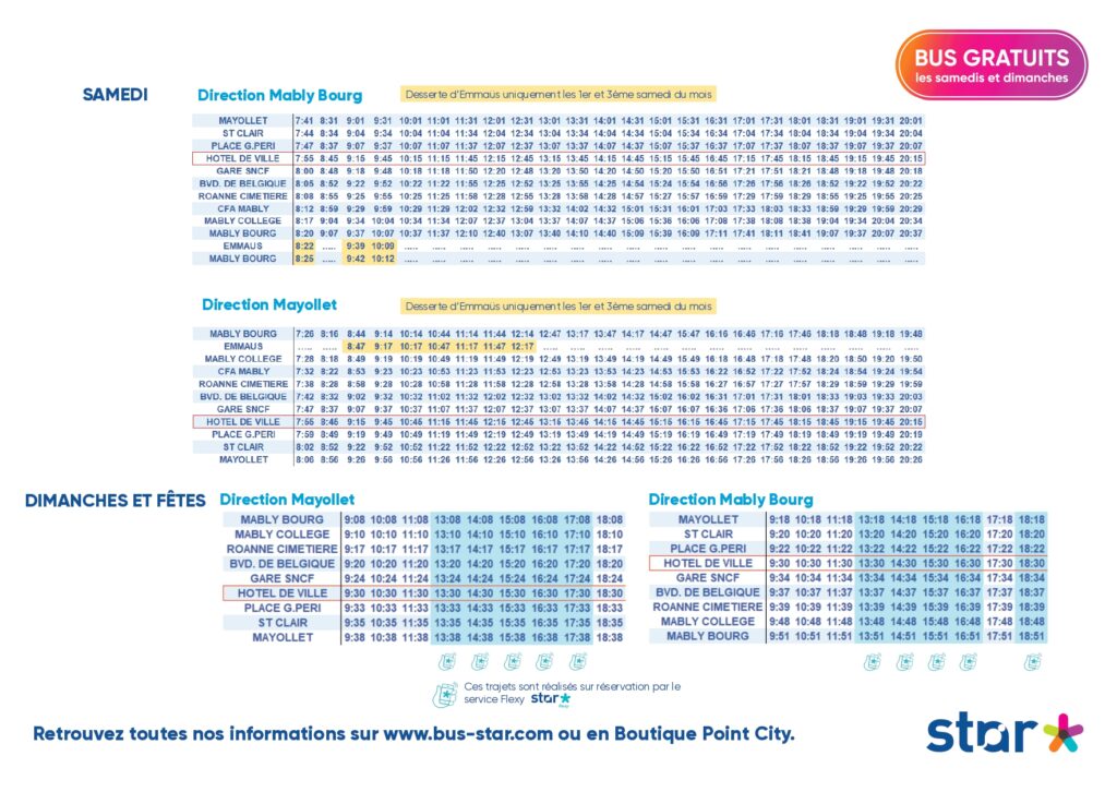 Merci de vous référez à la fiche horaire ci-dessous :