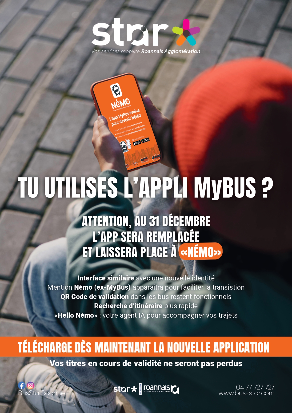 A compter du 1er janvier 2026, l’application Star by MyBus permettant l’achat et la validation de titres dématérialisés (sans carte oùra), change de nom et devient NéMO.