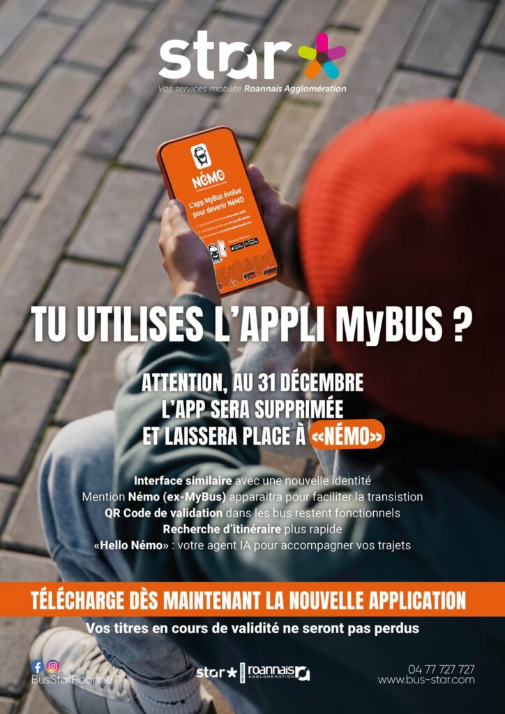 A compter du 1er janvier 2026, l’application MyBus sera remplacée par l’appli NéMO.